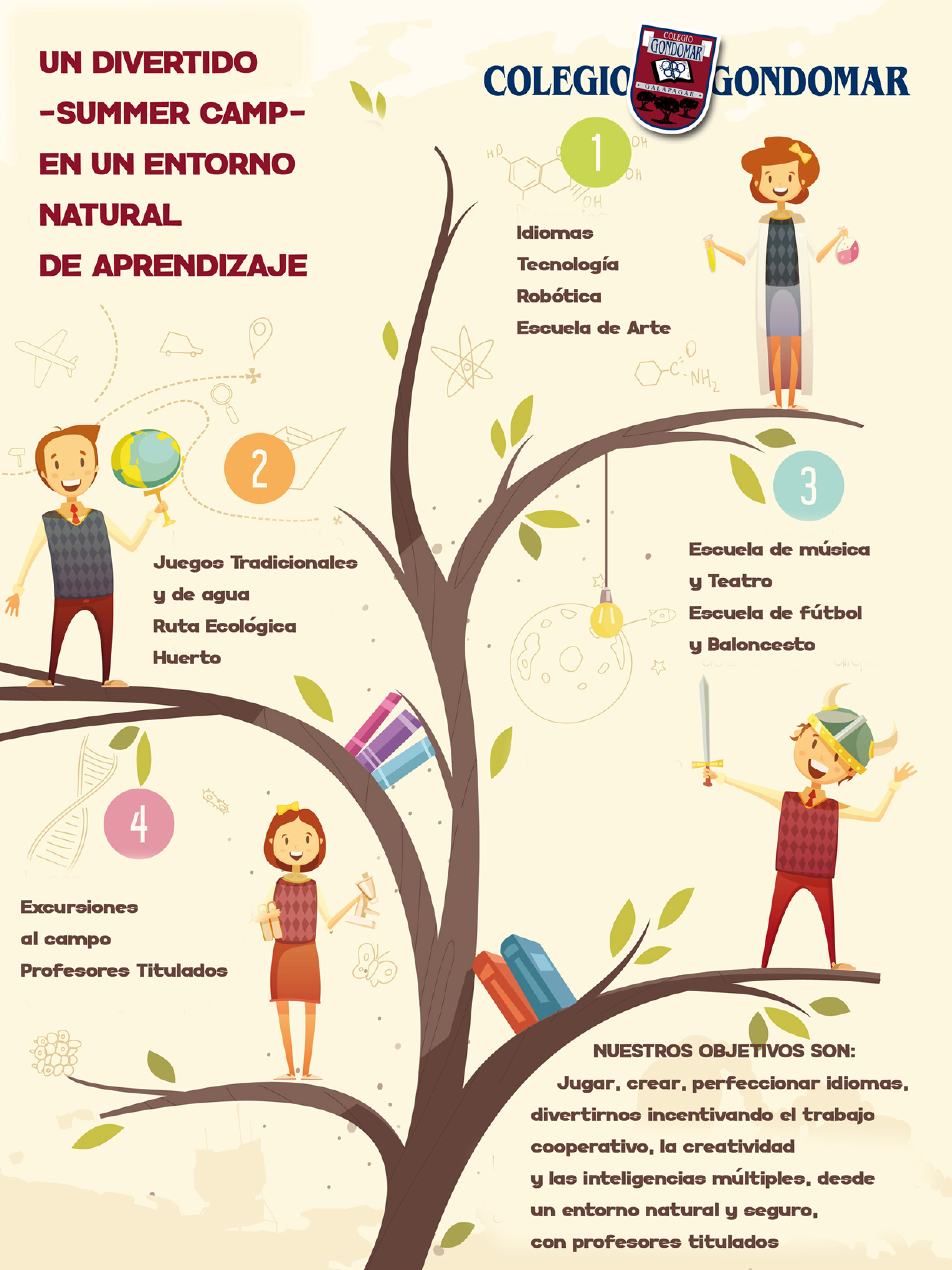 Un campamento diferente en un entorno natural de aprendizaje, que permite a los padres tener la tranquilidad de que sus hijos están aprendiendo, pasándolo en grande dentro de su propio colegio y en un horario ajustado a sus necesidades.