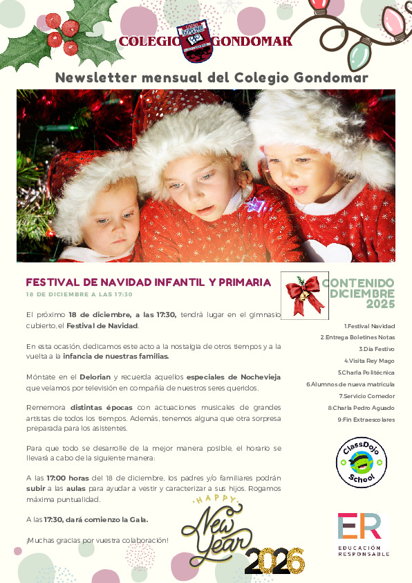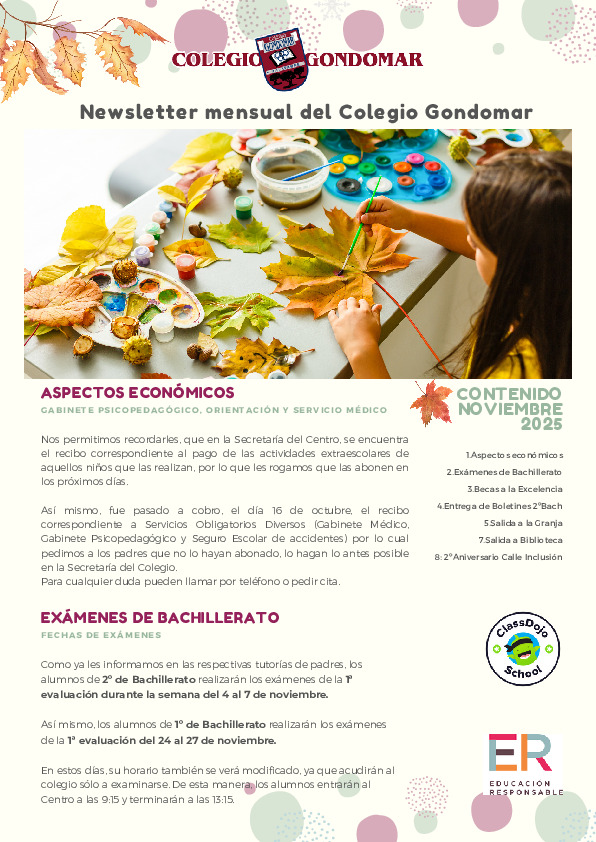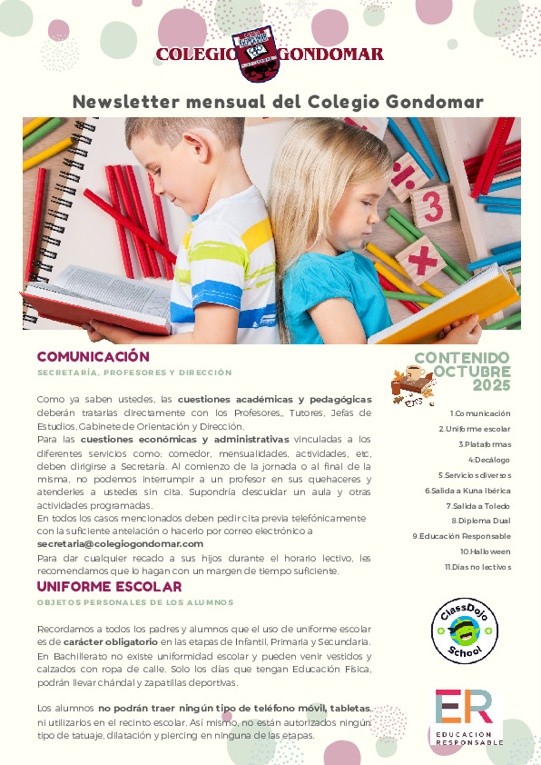 Descarga nuestro Boletín de Noticias mensual y no te pierdas todas las novedades del Colegio Gondomar.